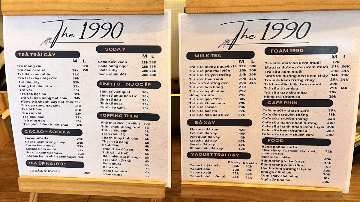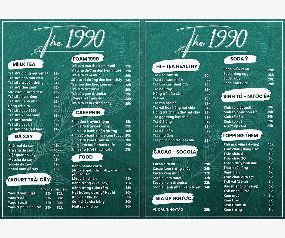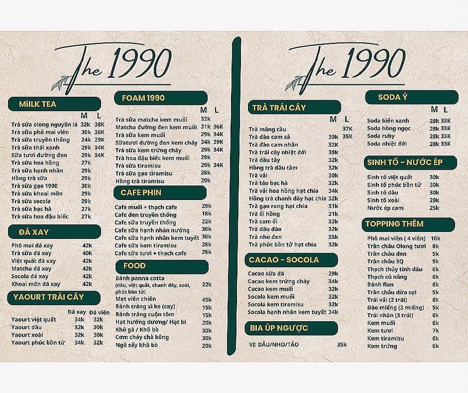 Trà sữa The 1990 Menu